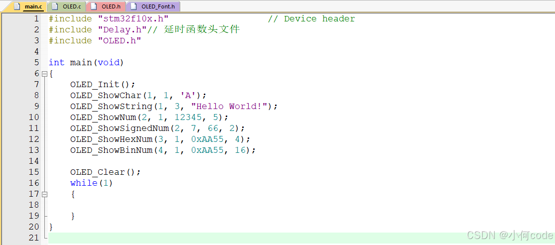 OLED_ShowString(1, 3, "Hello World!"); // 第1行第3列显示"Hello World!"
