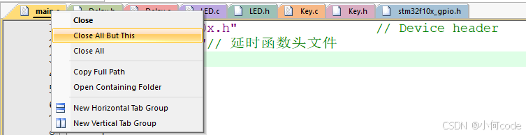 右键main.c,选择【Close All But This】,将其他的选项卡都关掉。