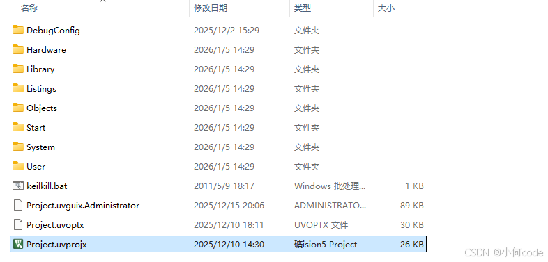 打开【4-1 OLED显示屏】文件夹,双击打开【Project.uvprojx】工程。