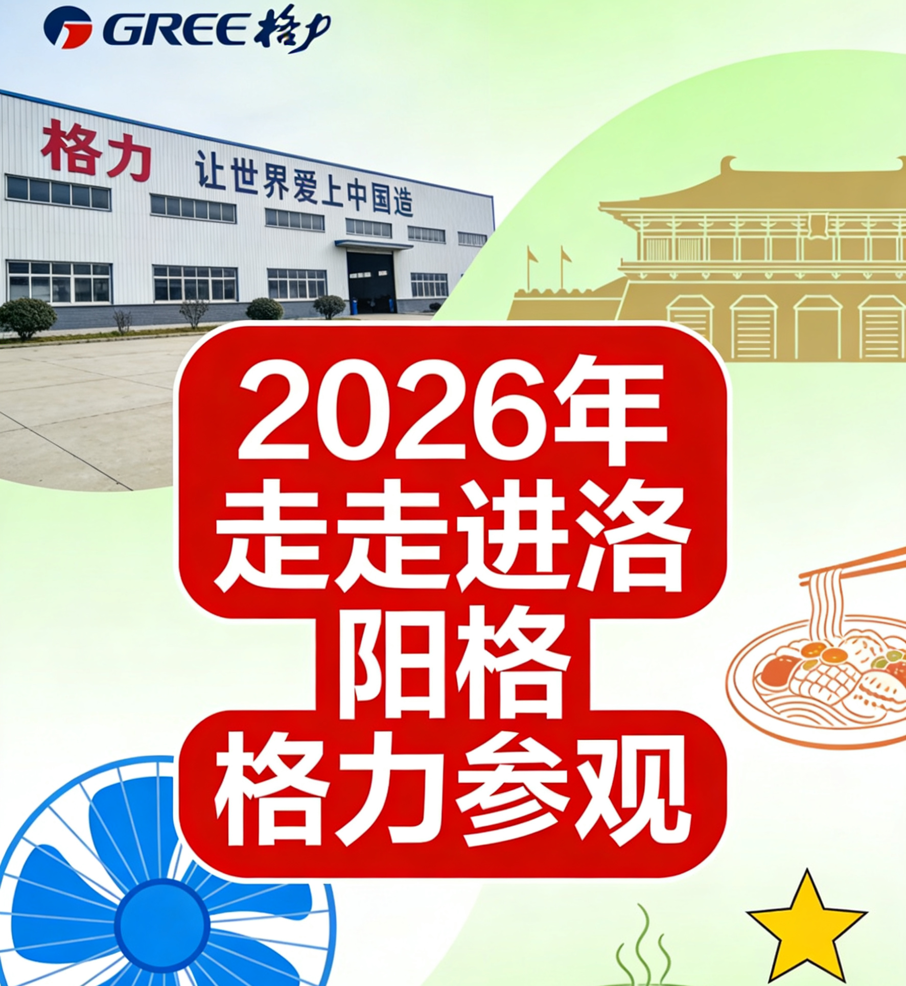 8:00 集合出发 在指定地点准时集合,统一乘车前往洛阳格力工厂