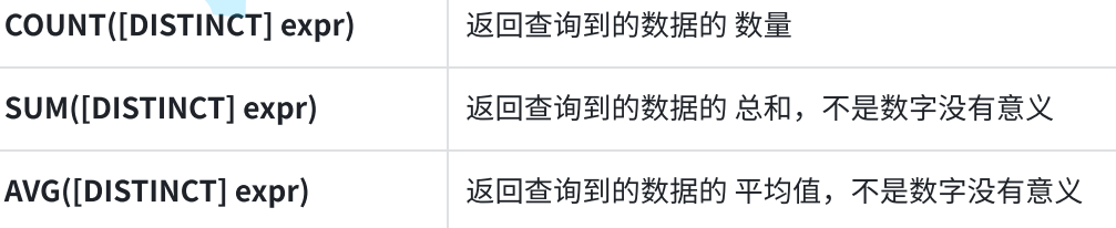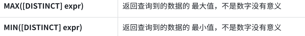 • aggregate_expr:聚合函数传入的列或表达式,如果列或表达式不在 GOURP BY 子句中,必须