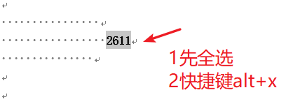 1、word里面输入2611,并选中2611这几个数字