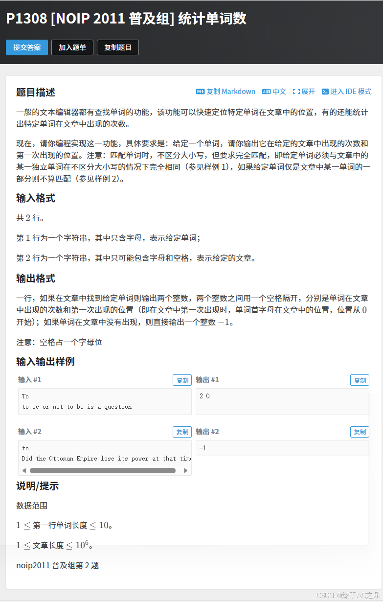题目: P1308 [NOIP 2011 普及组] 统计单词数