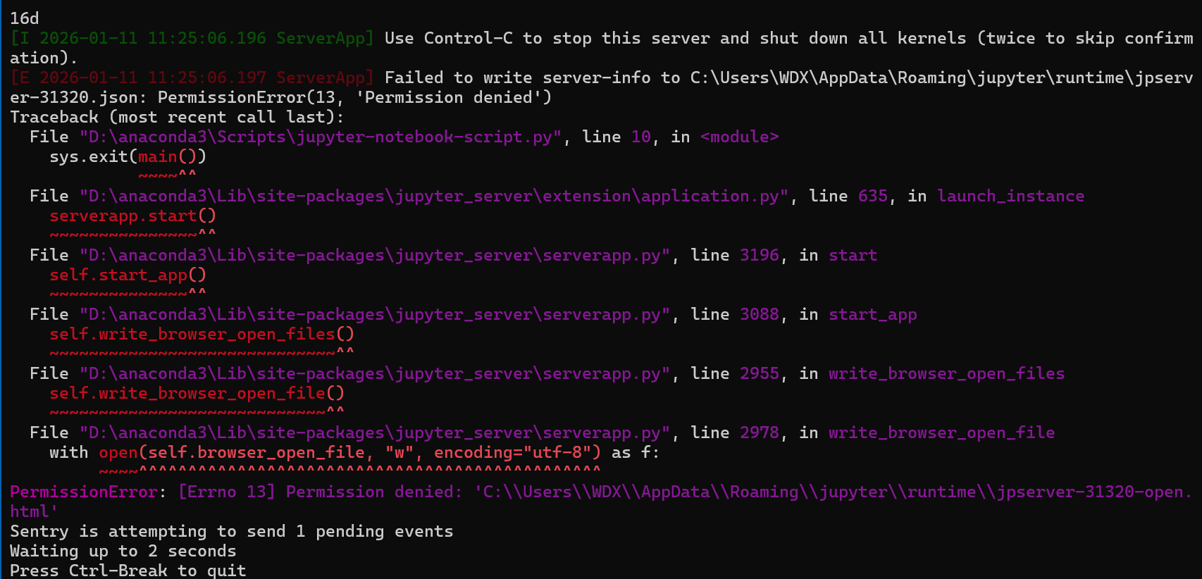 Anaconda安装完成后启动Jupyter报错,解决方法