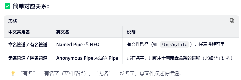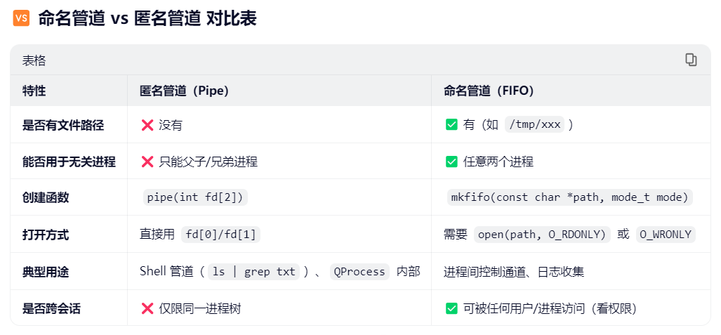 相对于有名管道或命名管道,经常一起对比的就是无名管道或匿名管道。之前在使用QProcess的时候有了解到它底层也是用匿名管道实现的,但在Linux中匿名管道还可以用更原始的方式去写,顺便再接触一下fork启动子进程的方式。