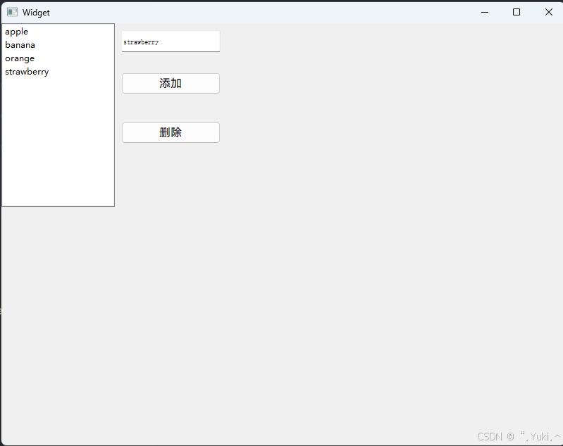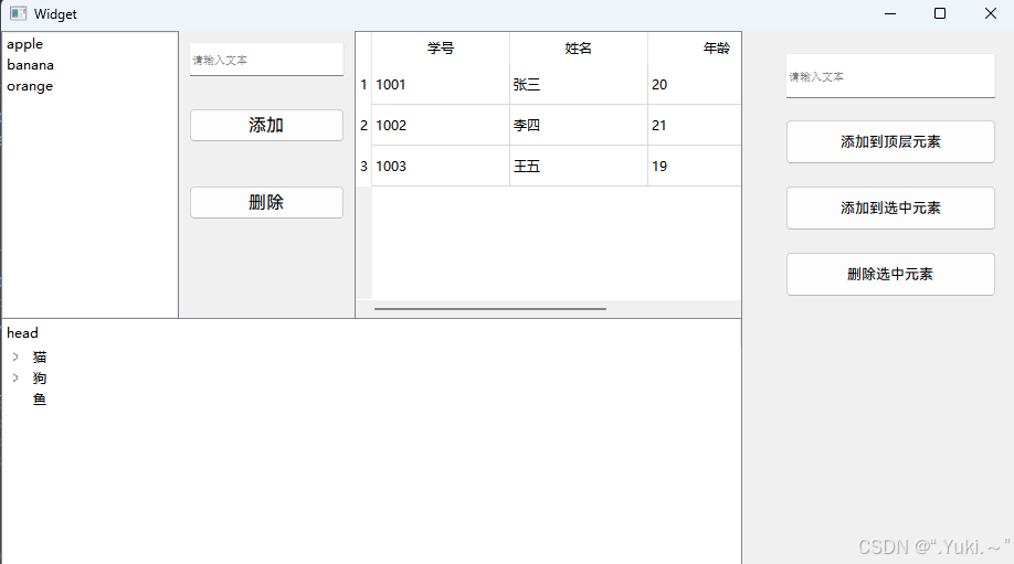 显示纵向列表,支持新增、删除、选中元素,每个元素为 QListWidgetItem。