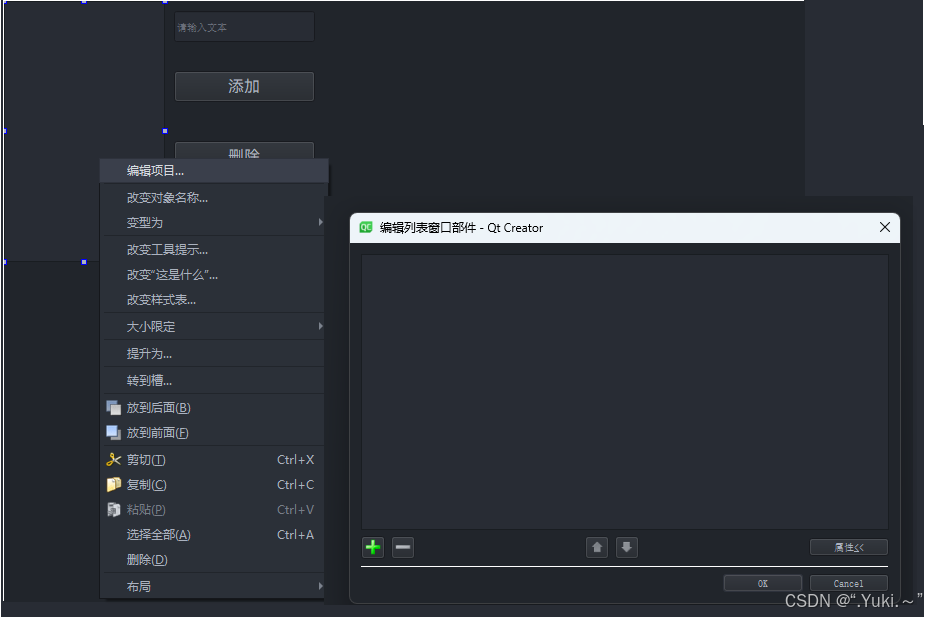 拖放 ListWidget、LineEdit、两个按钮(新增/删除),也可以通过ui直接添加:
