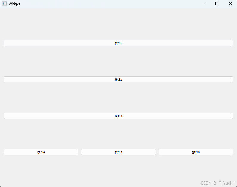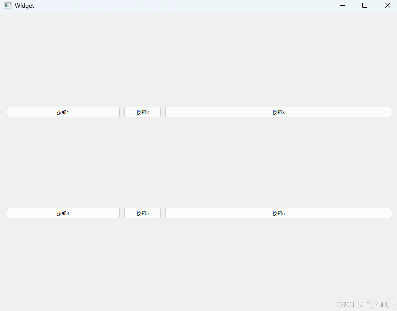 ------ 将按钮的sizePolicy设为Expanding,让按钮具备"根据布局空间调整尺寸、尽可能填充布局"的能力,布局的行拉伸系数才能生效,按钮才会随布局的空间分配放大/缩小。