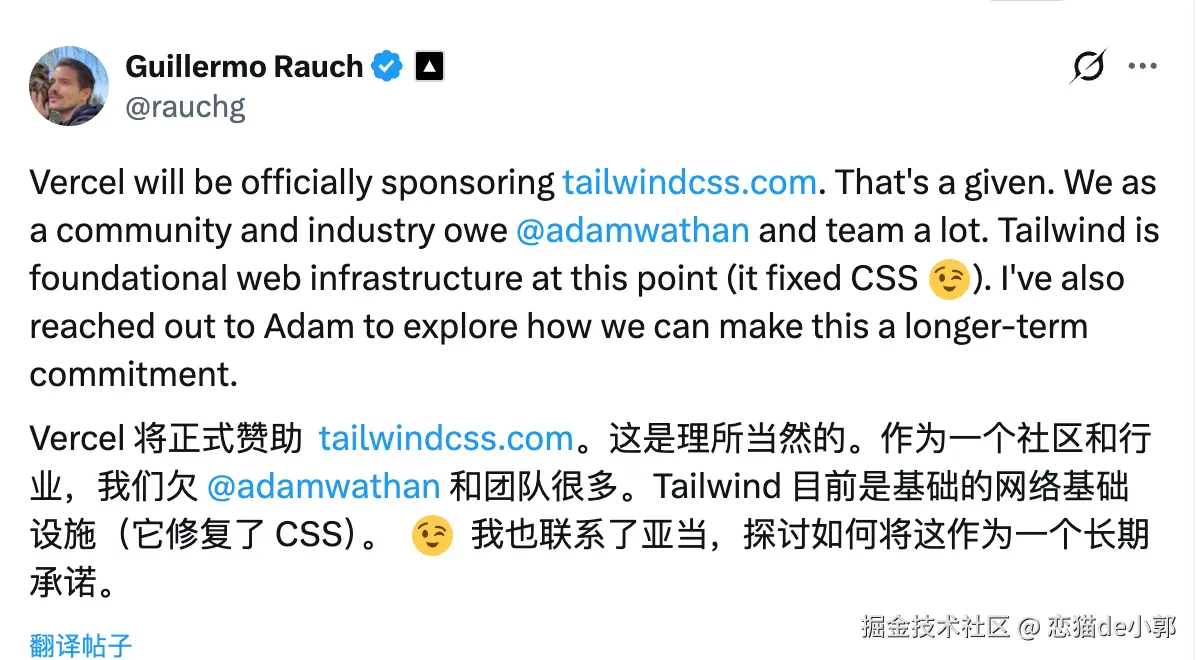 在链路上的差距,也导致了它们之间命运的走向不同,当然 Tailwind 深知"发声"的重要性,所以这波闹腾之后,也暂时性解决了生存问题,只是: