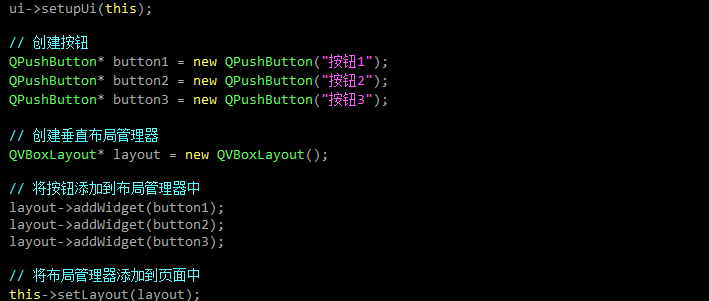 QVBoxLayout表示垂直布局管理器.