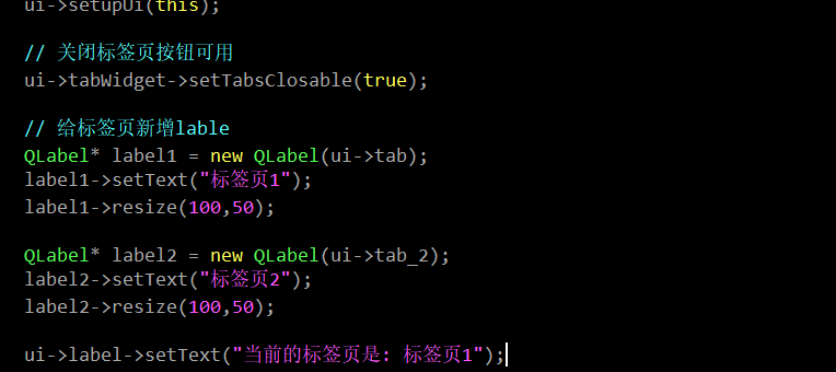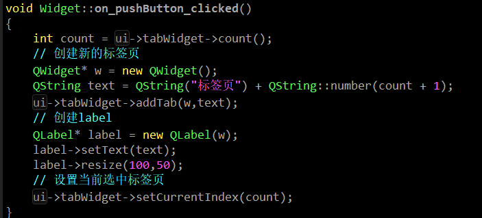 这里建议先创建标签页再设置当前选中的标签页.在QT中子控件在创建的初始状态是隐藏的,只有某个操作调用了当前控件的show()函数才会将这个控件显示出来,例如: