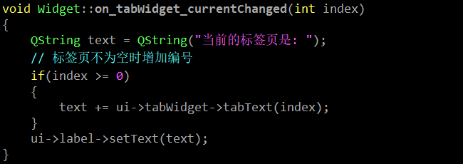 currentChange(int) 在标签页发生切换时触发,参数为被点击的选项卡编号.