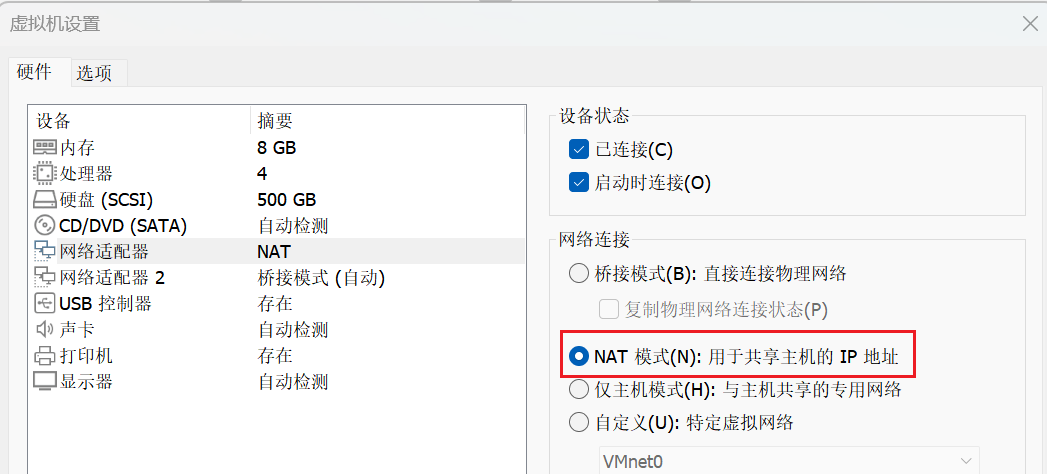 没修改 /etc/netplan/ 01-network-manager-all.yaml 里面的配置文件,ubuntu 的NAT网卡只有Wired connection 1 这个(不同版本yaml文件名称不一致)。