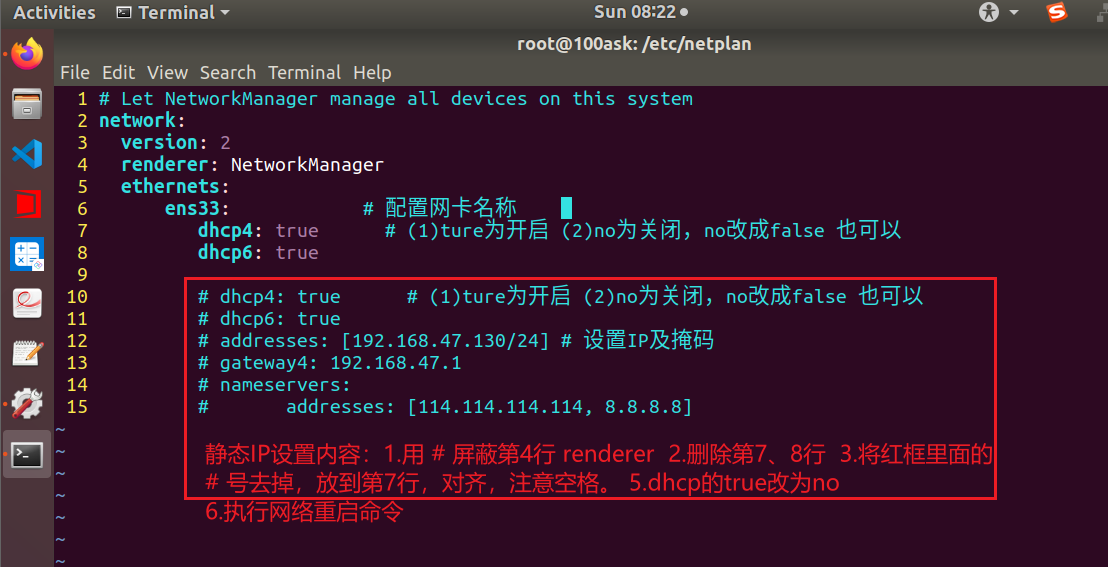 打开配置文件:vim /etc/netplan/xxxx.yaml,写入以下配置内容: