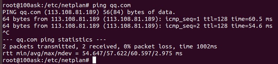 (3)执行重启网络命令 netplan apply 后,查看IP是否配置成功