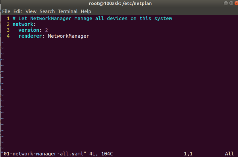 (1)打开 /etc/netplan/ 01-network-manager-all.yaml 修改里面的配置文件(不同版本yaml文件名称不一致)