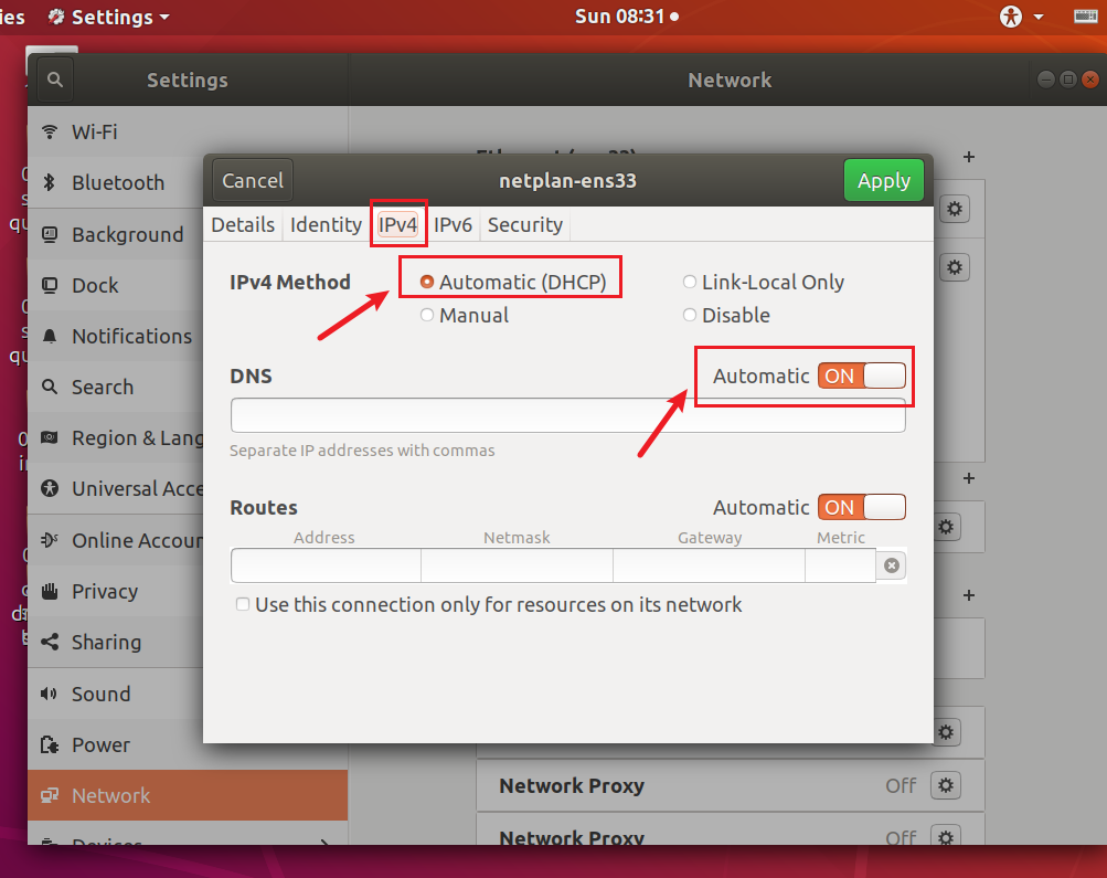 (2)将IPV4设置为动态IP,DNS也设置为动态。