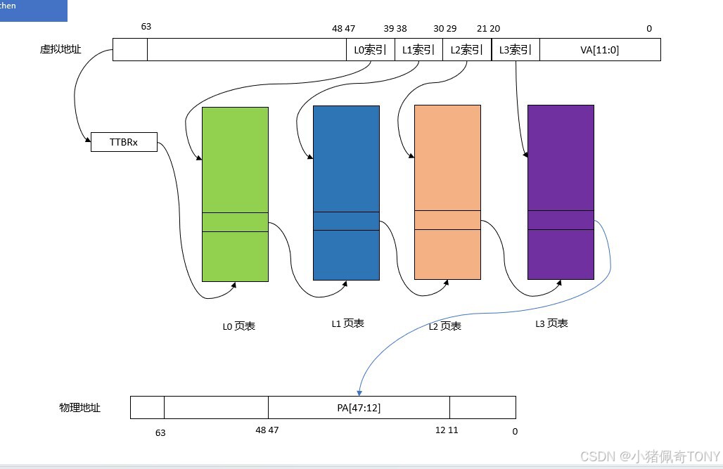 物理地址 = (L3 页表项中的物理页号 << 12) | VA[11:0]