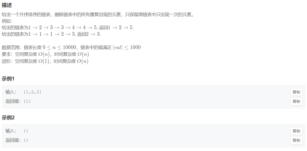 流程演示:(来自题解删除有序链表中重复的元素-II_牛客题霸_牛客网 (nowcoder.com))
