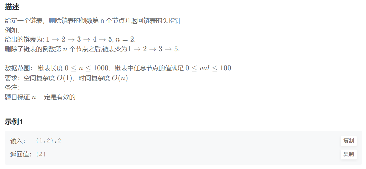 跟上一题差不多,区别就在于上面是找到对应的节点,这里是找到后要删除该节点,所以slow不能直接定位到该节点,而是定位到该节点的前一个节点,然后使用slow.next = slow.next.next进行删除,
