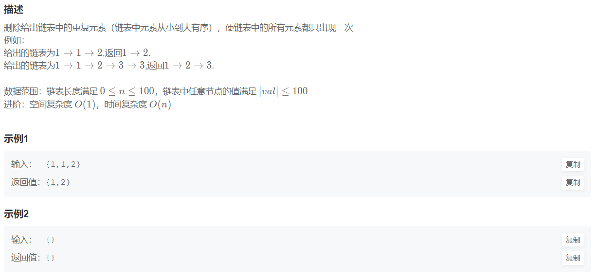 15.删除有序链表中重复的元素-I(简单)(模拟+遍历)