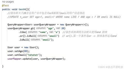 简单的用QueryWrapper,特别复杂的可以自定义sql语句更简便(n层嵌套语句)