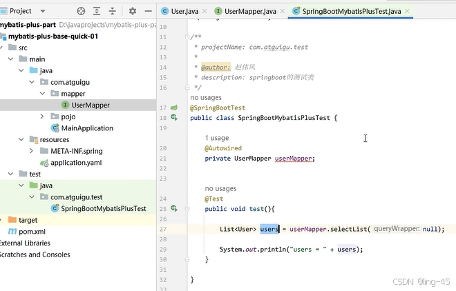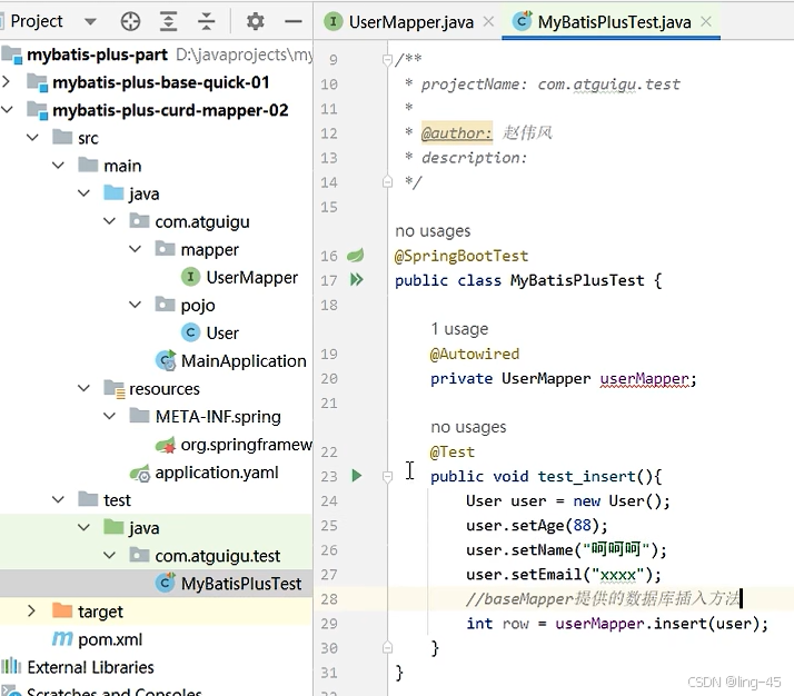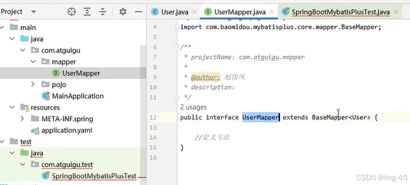 BaseMapper是由mybatis-plus提供的,里面有单表的增删改查等等方法