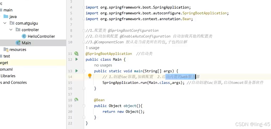 3.本身会扫描启动类所在的包和子包的ioc和di注解