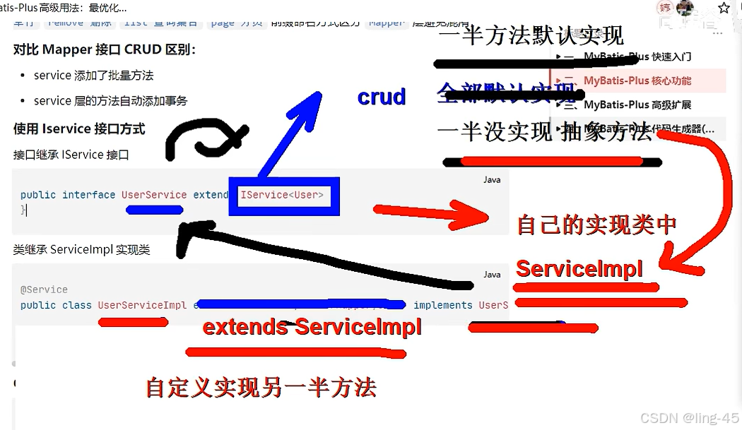 【弹幕】UserService中有IService的一半的实现的方法, 和自定义的方法, UserServiceImp中有IService全部的实现方法和UserService中自定义的方法, 所以还用接口接