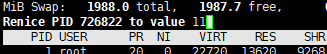 使用top命令,按r(renice)