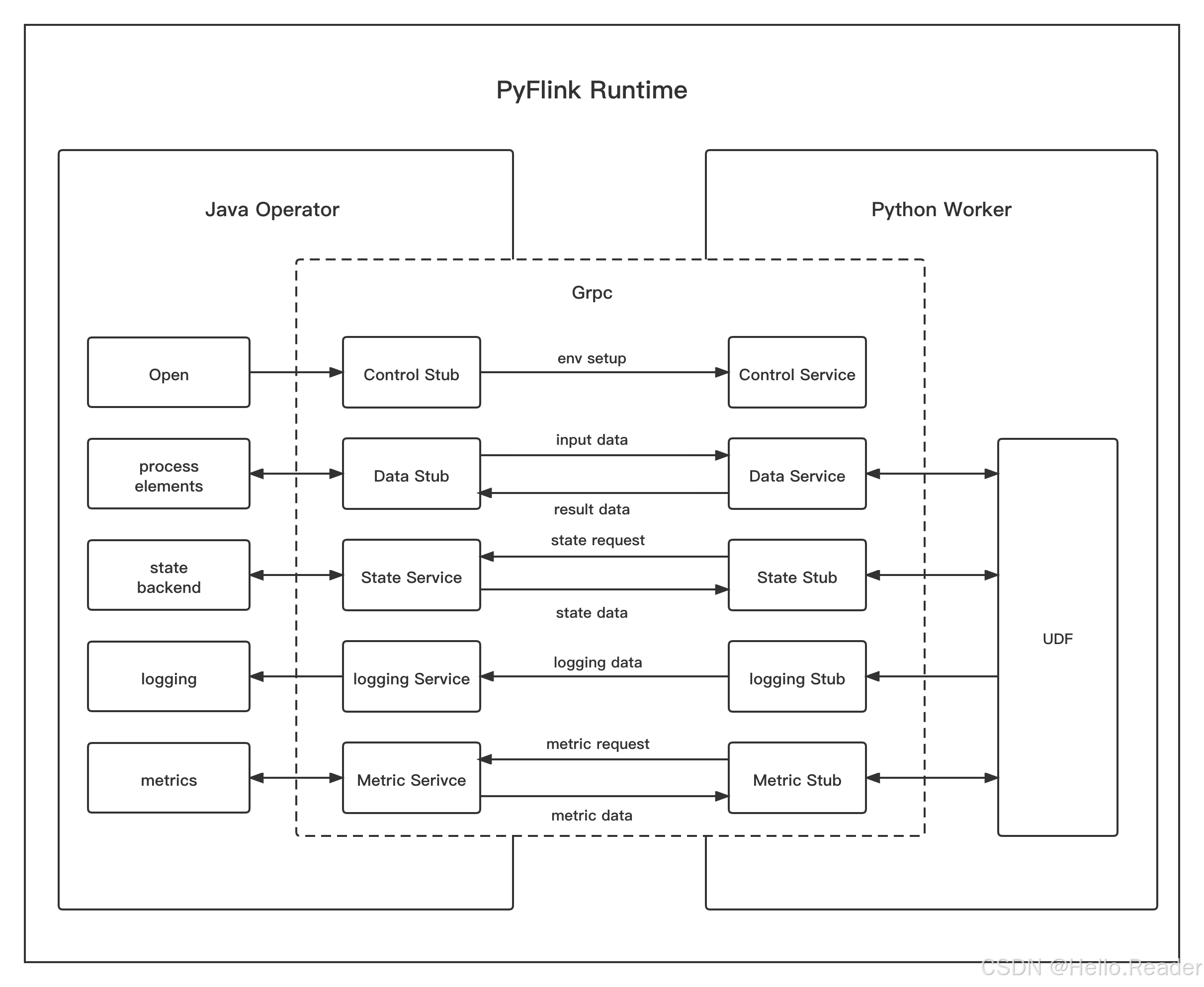 - Java Operator 与 Python Worker 是 两个进程