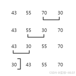 - 第一次从一堆里挑出最小的,放在第一个位置;第二次从剩下的里面挑最小的,放第二个位置......