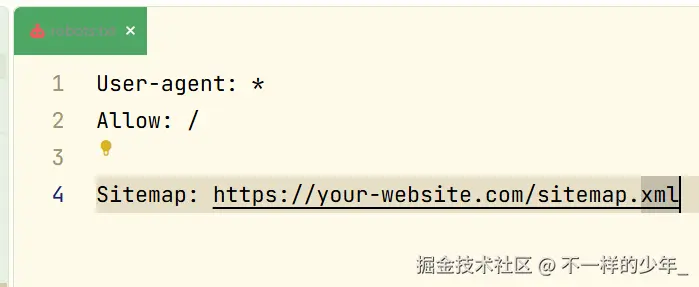 Sitemap: https://your-website.com/sitemap.xml这是最关键的一行。它直接把我们刚才自动生成的站点地图地址甩给蜘蛛。蜘蛛一进站,第一眼看到这个地址,就会立刻去读地图,从而精准、高效地抓取你全站的内页,而不至于在你的网站里"迷路"。