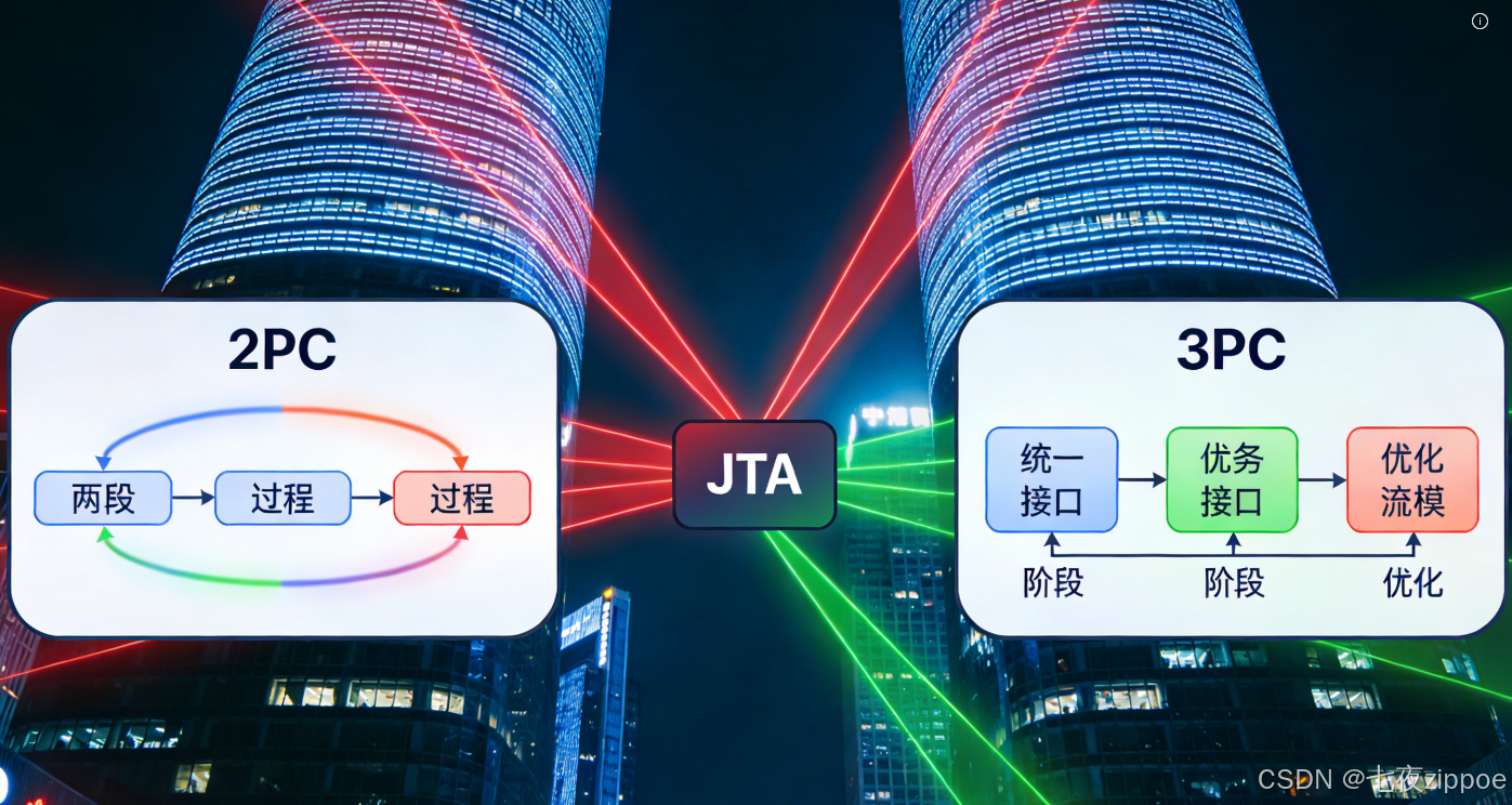 @Transactional注解就能搞定,结果数据不一致、系统卡死、回滚失败接踵而至。今天咱们就彻底搞懂2PC、3PC和JTA这三个看似古老但依然重要的技术。