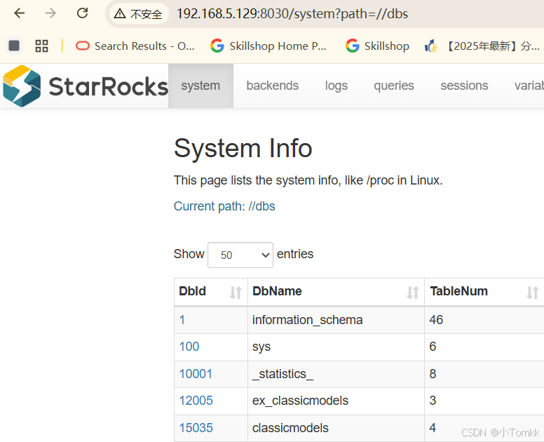 ⚠️ 如果是首次部署,可能需要先在 StarRocks 配置中开启 Web 管理访问和用户认证。