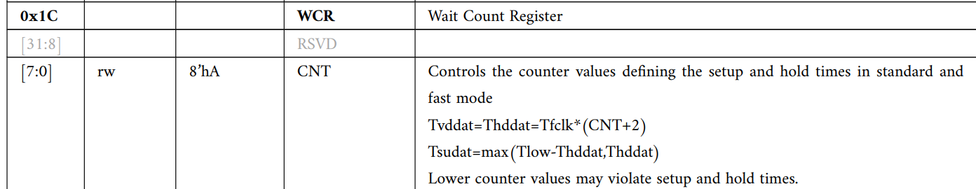 hwp_i2c1->LCR = 0xA0; //fclk = 48MHz时,默认max100KHz