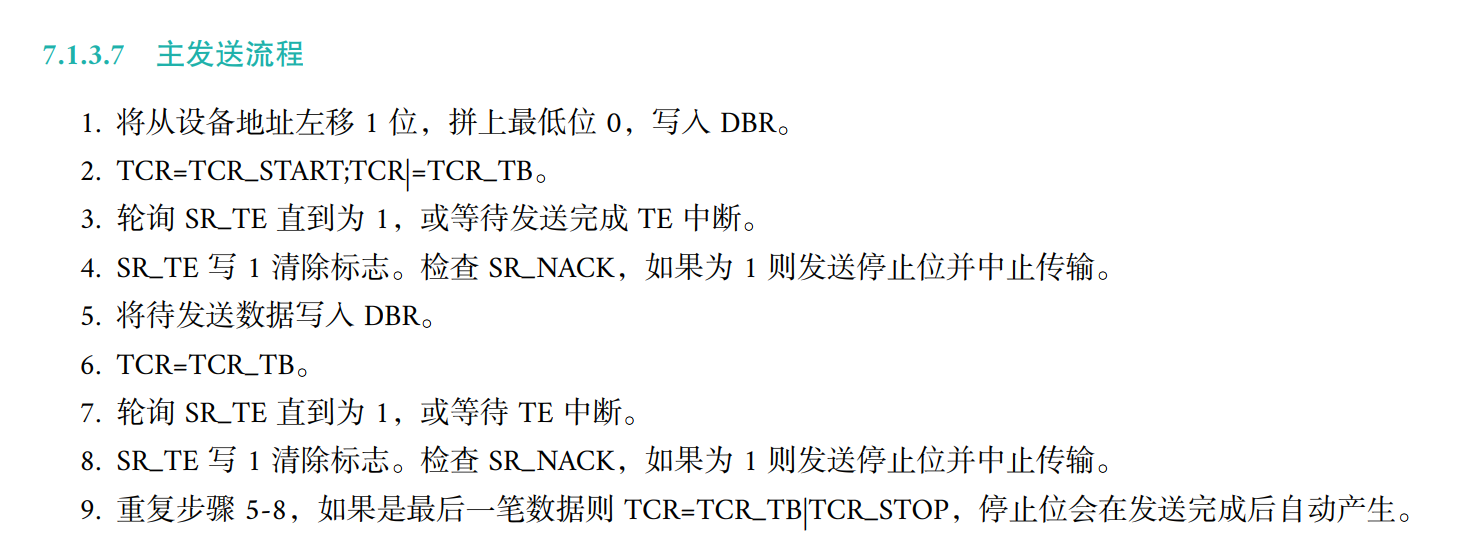 使能I2C使能,至此I2C初始化已经完成,后续是I2C数据发送接收流程