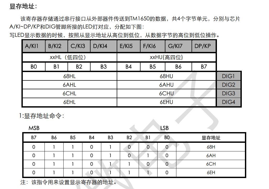 指令格式如下:需要先配置亮度等控制指令,然后再配置对应数码管的显示