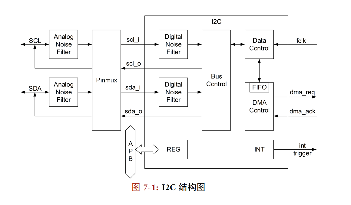 从下面结构图可以看出,I2C设备共有 4输入 4 输出