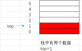 当 top=0 时,top 指向栈顶下一个可插入元素的位置(空栈状态下,第一个元素会插入到下标 0 的位置)