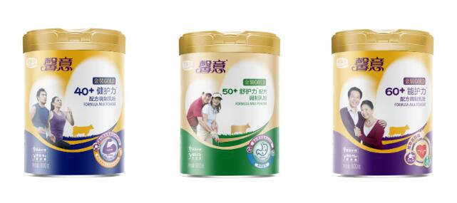 图注:君乐宝推出的分别面向40+、50+、60+的成人奶粉产品