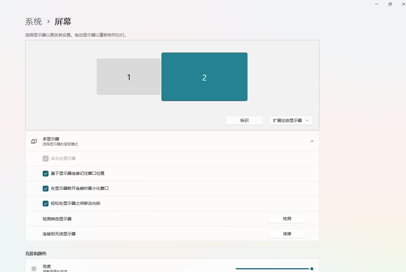 设置屏幕方位,你可以直接拖动你的屏幕到达你实际屏幕摆放的顺序与位置这样的话,你的鼠标就可以根据你的实际摆放位置去横跨两个屏幕