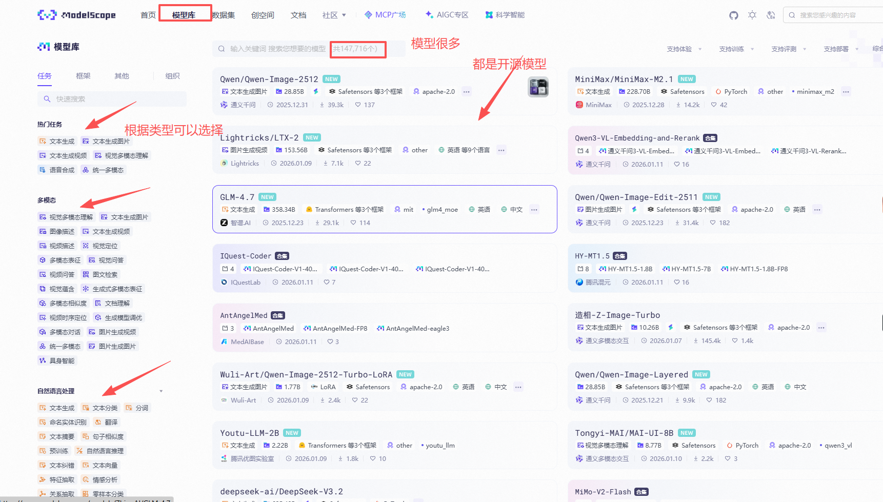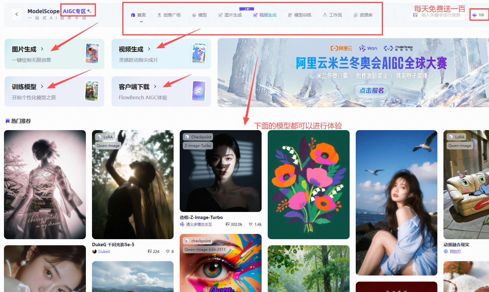大家可以重点体验一下,魔搭社区,里面有好多有趣的模型可以尝试尝试。