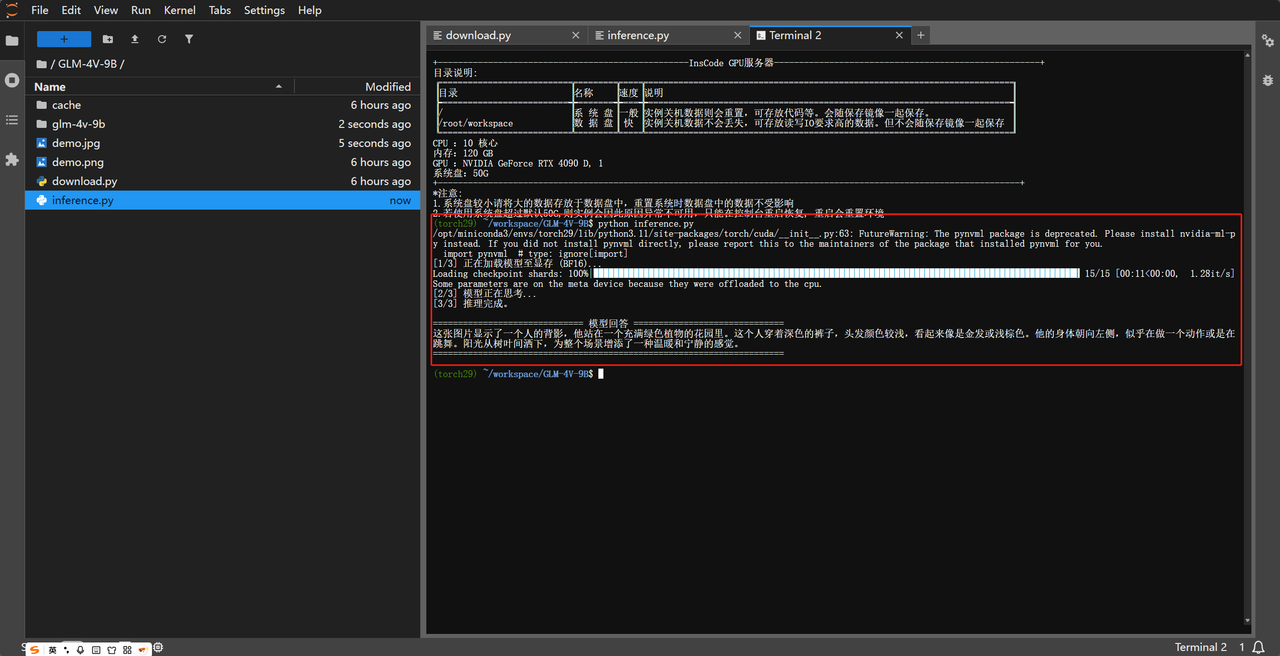 本教程将指导你如何在已安装 PyTorch 的 Linux 服务器上,快速完成 GLM-4V-9B 的部署与推理。