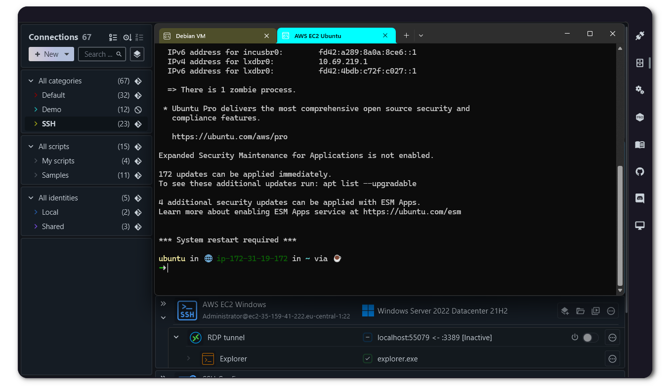 XPipe 是一个连接中心,能够在无需对远程系统进行任何配置的情况下,利用用户已安装的命令行程序(如 SSH、Docker等)直接连接到各类服务。它支持用户喜欢的文本编辑器、终端、Shell、VNC/RDP客户端、密码管理器以及命令行工具,且支持扩展,用户可以通过模块化的扩展系统轻松添加对更多工具的支持。