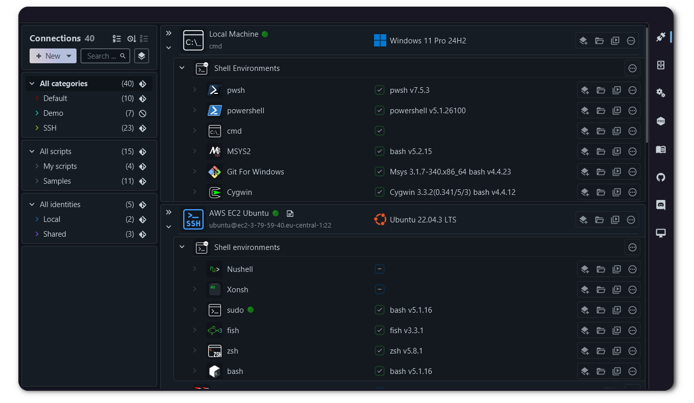 XPipe能够在用户最喜爱的终端中快速启动Shell会话,自动填充密码提示等信息,支持环境变量和各种命令行规范,让命令行操作更为流畅。
