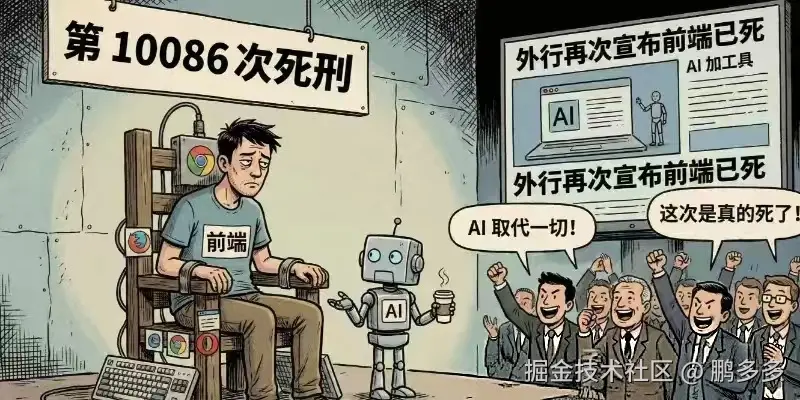 自从22年底,AI出现后,技术圈上充斥着"前端已死"的声音。什么AI可以写前端页面啦,产品直接让AI做,去掉中间环节。前端岗位没啦。
