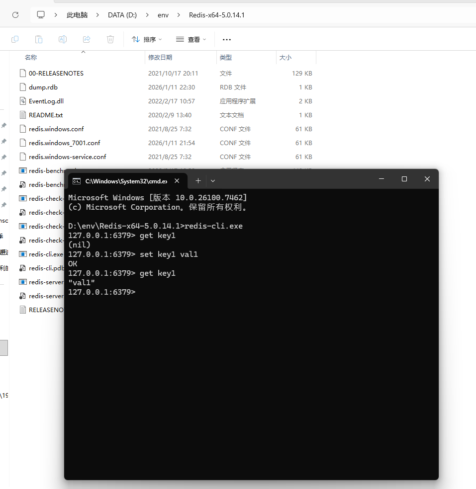 Redis-x64-5.0.14.1.zip下载完成后,打开相应的文件夹,您会看到如下图所示的文件目录: