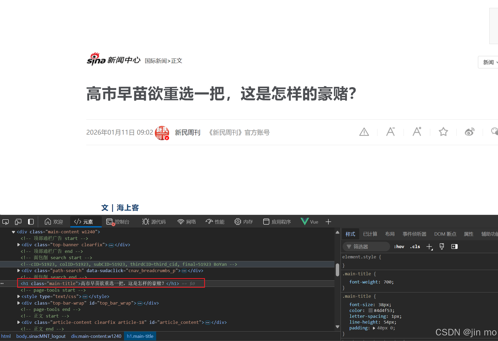 在日常网页的中,标题标签的使用可谓是无处不在,下面两个例子,例如,新浪新闻页面