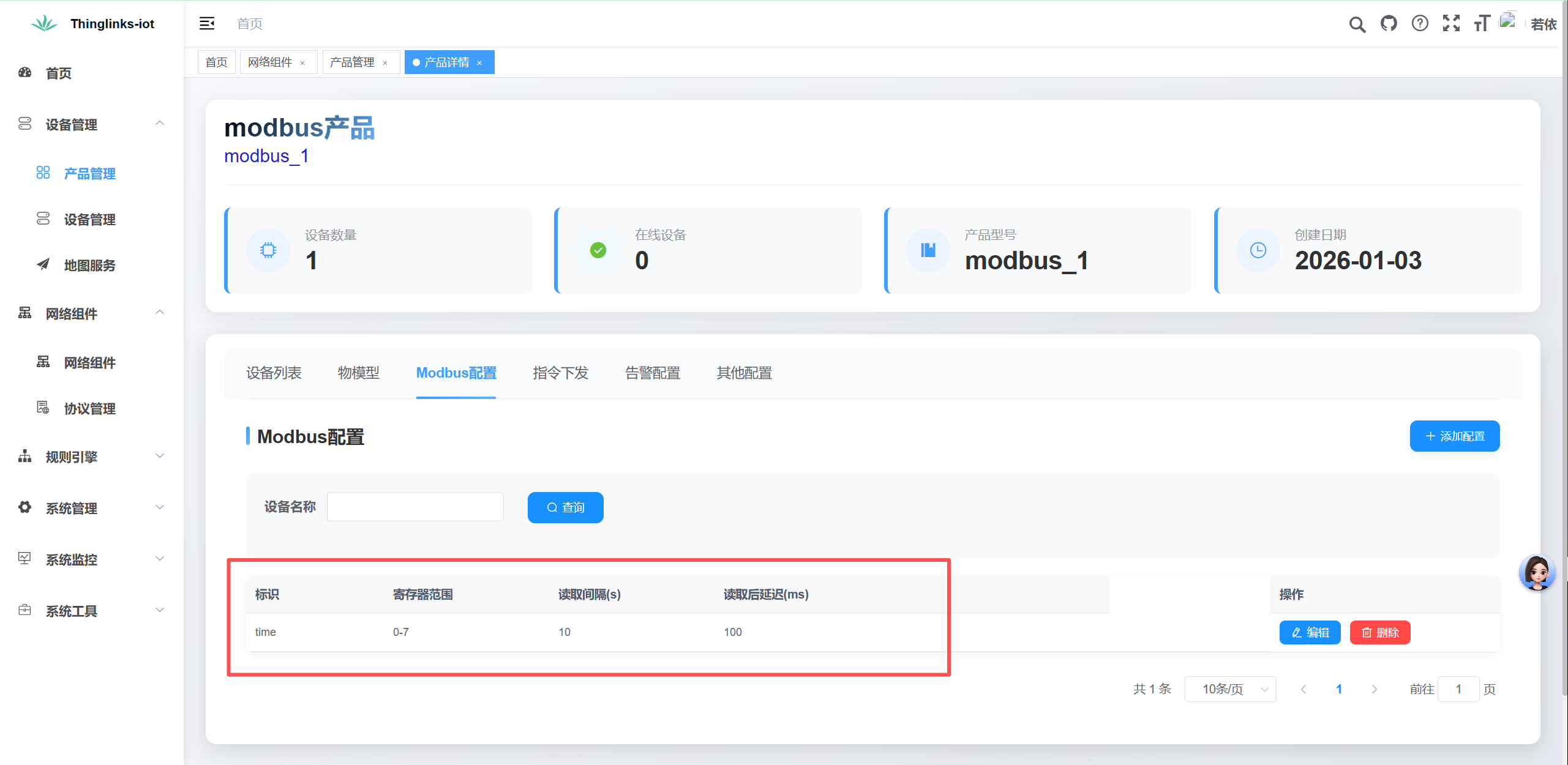 modbus有一个单独的配置项,该配置项可以配置一组一组读取寄存器数据,寄存器范围可以用如0-8,9-12,13,15-17表示,平台会根据逗号自动分组,然后需要在协议的decode方法中去解析读取的数据,这里需要注意读取的间隔,避免频率过快导致超过波特率,自行判断即可。